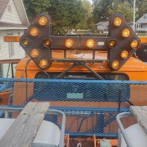 -Also has safety lighting and arrow board for parking on the side of the roadway.